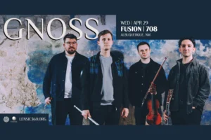 Lensic 360 is bringing Gnoss to FUSION | 708 on Wednesday, April 29, at 7:00 PM. Gnoss’ signature sound is a rich tapestry of acoustic layers. Outstanding musicianship, deep traditional roots, and contemporary compositional flair combine to create songs and tunes brimming with character.